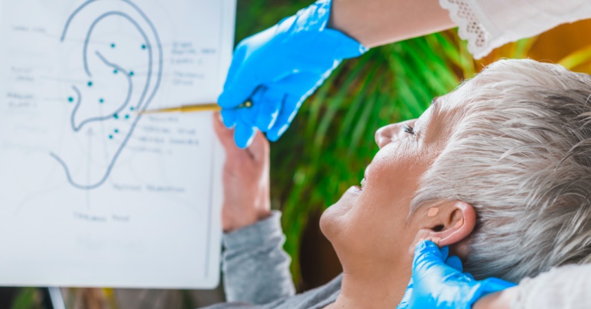 Es una técnica que estimula zonas reflejas del cuerpo desde la oreja para mejorar la salud. La oreja es un microsistema que refleja la energía del cuerpo; el Dr. Paul Nogier en 1956 desarrollo el microsistema auricular y ya es una terapia avalada por la OMS.